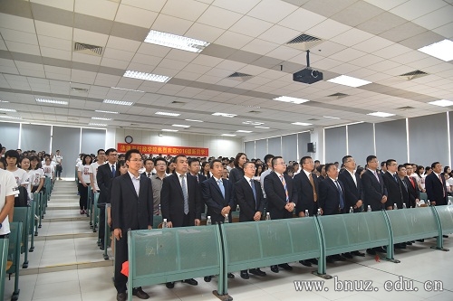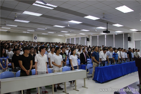 校本部信息科学与技术学院院长姚力教授,副院长朱小明教授,珠海分校信息技术学院院长赵志文教授,副院长黄静教授,党总支副书记、学工办主任罗思杰老师,各系系主任,教师代表以及2016级全体新生出席了此次开学典礼。