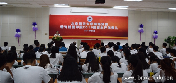 王学思院长介绍了特许经营学院的办学理念和学院的办学历史,以及学院建院以来在师资队伍、国际合作、学生就业等多方面的办学成果。最后,他对2016级新生提出了三点希望:一要学会学习,自立自强;二要修身立德,谨遵校训;三要夯实专业基础,提升专业技能。