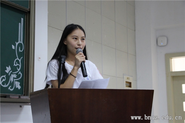 2016级会展新生徐子萌同学在发言中表示,崭新的校园生活让她有些许忐忑慌张,但更多的是对新生活的憧憬与向往,对大学生活中的挑战,应当充满信心。