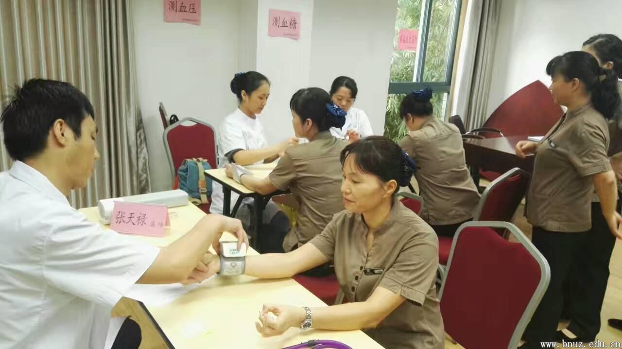 为方便女教职员工体检,同时注意保护女性隐私,本次体检特安排在国际交流中心三楼,并分开不同的房间进行专项体检。体检项目包括“两癌”(宫颈癌、乳腺癌)筛查、妇科问诊、中医辨识、血压测量、血糖监测、“580家庭医生”签约服务及教职工健康档案建立。医务人员现场还讲解妇科健康知识、日常自我保健及防治等基本知识,从而提高了广大女性职工防控疾病的能力,增强了自我保健意识,为大家拥有健康的体魄打下基础。