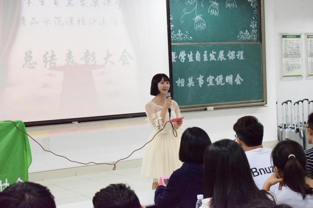 会上,杨军老师号召在场学生应以兴趣为导师,积极参与自主发展课堂,学习课外知识,利用好学校教改创新平台。同时,他也希望新一届课程负责人能有更出色的表现。大会对获得2015-2016学年学生自主发展课堂精品示范课程及优质课程的负责人予以表彰。此外,课程负责人代表上台做了经验分享,校学生自主发展协会相关负责人对自主发展课堂相关事宜进行了答疑,并为新开课班长做培训。