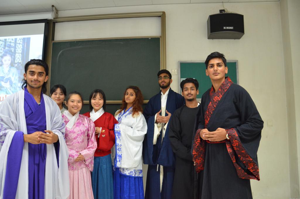 最后,在互动环节中,留学生们纷纷试穿汉服。留学生们都表示,这样的文化介绍活动很有趣,增进了他们对中国文化的了解,加深了他们对中国文化的热爱。
