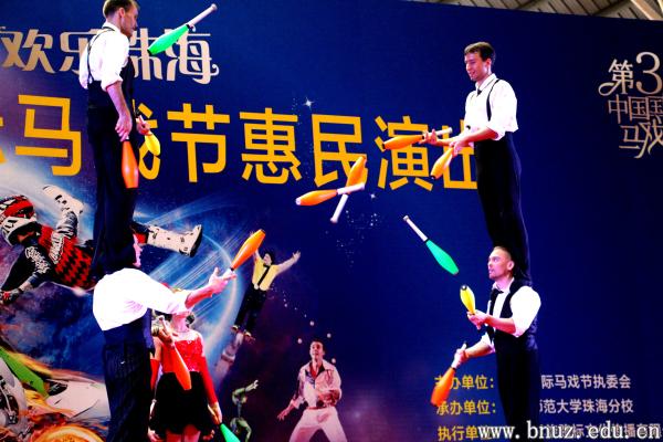 本网讯(通讯员 张宇璇 )11月17日上午,第三届中国国际马戏节惠民演出在我体育馆顺利举行,来自摩尔多瓦、美国、乌克兰、意大利等国家的九个顶级马戏节目轮番上演,将体育馆变成了一片欢乐的海洋。我校师生及家属、中山大学珠海校区等周边高校大学生和珠海四中西藏班、北师大珠海附中新疆班等中小学生共2600余人欢聚一堂,共同观看了精彩的演出。