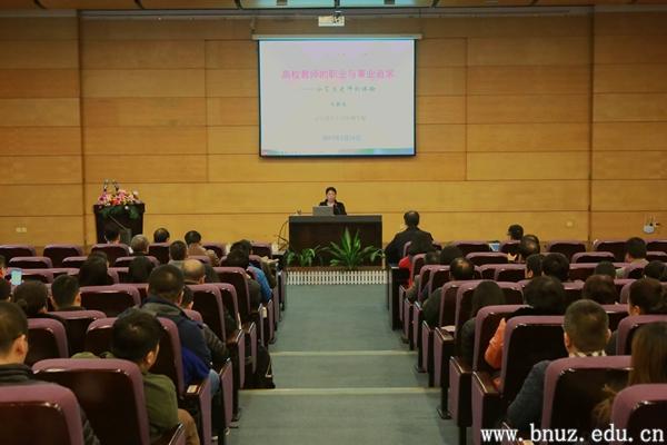 本网讯(记者 王薇)2月24日下午,北京师范大学地理科学部教授、博士生导师王静爱应邀来分校举行了题为《高校教师的职业与事业追求》的讲座,为分校教师分享了她30多年教书育人的经验和体会,近300名教师聆听了讲座。讲座由校长涂清云教授主持。