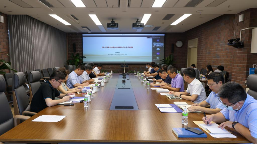 7月4日下午,珠海园区举行党委理论学习中心组专题学习会,专题学习民主集中制。学习采取视频连线形式,园区领导班子成员分别在北京和珠海参加学习。园区非党员领导班子成员、珠海园区领导小组办公室有关同志、党委工作部门有关同志列席会议。学习由北京师范大学马克思主义学院教授孙秀民主讲。