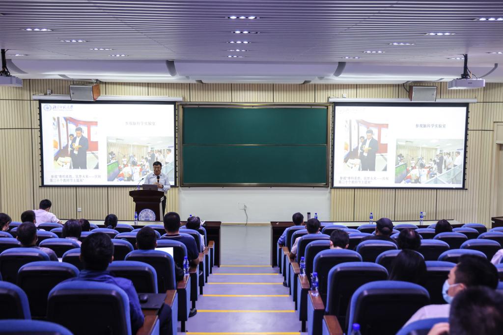 讲座开始,郑国民带领大家回顾了“优师计划”师范生代表给总书记写信并收到回信的全过程,并结合总书记2014年考察北师大和2015年给“国培计划”北师大贵州研修班参训教师回信,以亲历者的身份讲述此次回信对于北师大建设发展、师范生人才培养、教师教育的重要意义。他结合自身教学理论和实践重点阐释了习近平总书记提出的做党和人民满意的“四有”好老师的丰富内涵。随后,郑国民介绍了北师大师范生人才培养的整体规划与现状,结合“优师计划”实施以来的经验总结,提出了校区推动师范生培养的重要举措,一是推动师范生砥砺品格、坚定教书育人信念;二是加强教育实践,夯实传道授业解惑本领;三是加快“学院-书院”协同育人,构建“优师计划”人才培养共同体;四是推动教育数字化转型,塑造师范生国际视野,助推贫困地区教育跨越式发展和乡村振兴。