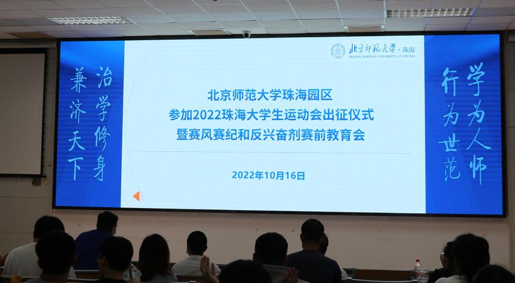 10月16日,北京师范大学珠海园区参加2022首届珠海大学生运动会出征仪式暨赛风赛纪和反兴奋剂赛前教育会在励耘楼A112顺利举行。未来教育学院体育系、运动休闲学院、校团委相关领导和老师,各项目教练员代表、运动员参加了本场出征仪式暨赛前教育会。