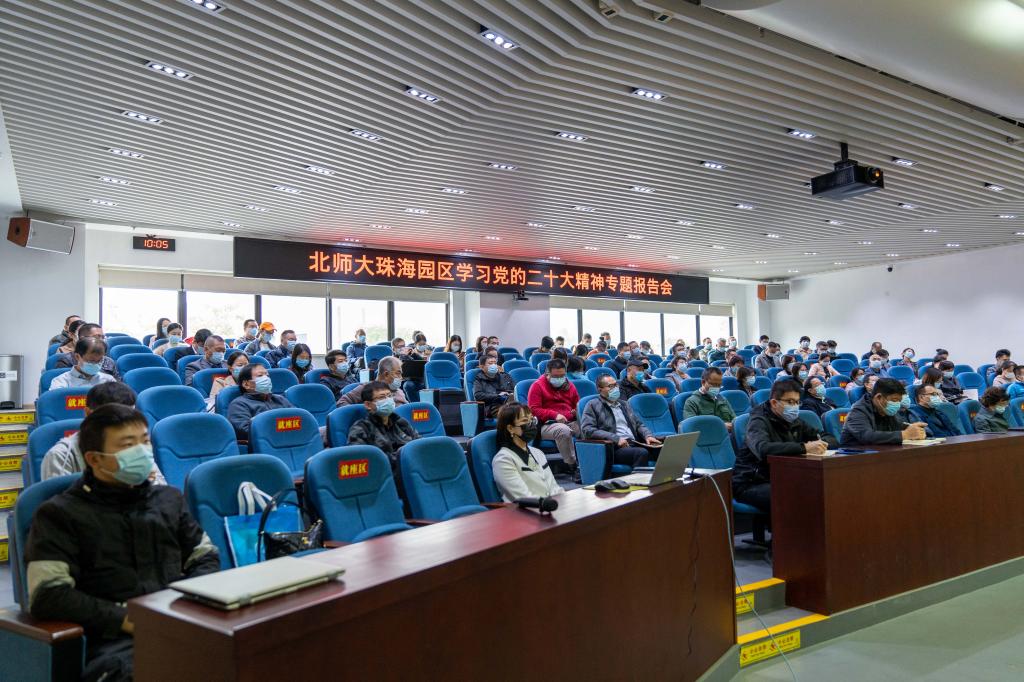 珠海园区按照北京师范大学党委和广东省、珠海市教育主管部门部署要求,持续开展党的二十大精神宣传学习系列活动,引导广大党员、师生员工把思想和行动统一到党的二十大精神上来,把工作重点聚焦到“一体两翼”发展建设确定的各项目标任务上,以实际行动推动园区发展。