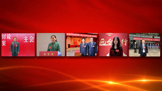 珠海市人大代表刘权(左一)、杨志伟(右一),珠海市政协委员万喆(右二)、毕蕾(左二),香洲区人大代表宁少林(左三)、李金权(右三)分别参加会议