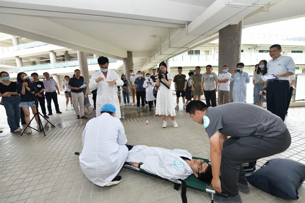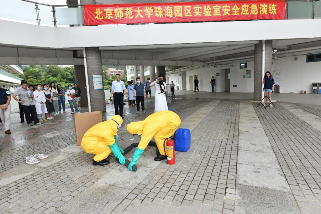 6月6日下午,为全面贯彻落实教育部办公厅关于印发《高等学校实验室安全规范》的通知和国务院安委会办公室、应急管理部关于印发《2023 年全国“安全生产月”活动方案》的通知要求,进一步增强师生实验室安全意识,提升突发事故的应急处置能力和应急救援能力,实验室安全与设备管理办公室联合党委保卫工作办公室、教务部实验与实践创新教育中心、自然科学高等研究院、理工实验平台、环境与生态前沿交叉研究院、后勤及资产部门等,于励教楼组织开展实验室安全应急培训与演练。珠海校区管委会副主任、珠海分校党委副书记张治国,党委保卫工作办公室、后勤办公室、资产管理办公室、纪委办公室等相关部门负责人及有关人员出席启动仪式并参加了实验室安全应急培训。80余名师生参加了本次培训和演练活动。