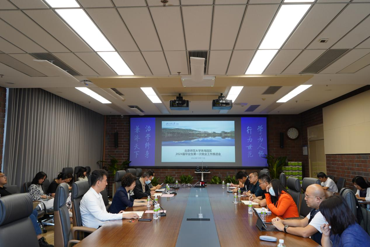 10月11日,北京师范大学珠海园区2024届毕业生第一次就业工作推进会于木铎楼A708召开。北京师范大学珠海校区管委会副主任、珠海分校副校长虞立红,珠海校区党委副书记、珠海分校党委副书记韩舰,各单位就业工作负责人、园区就业工作部门全体成员参加了会议。