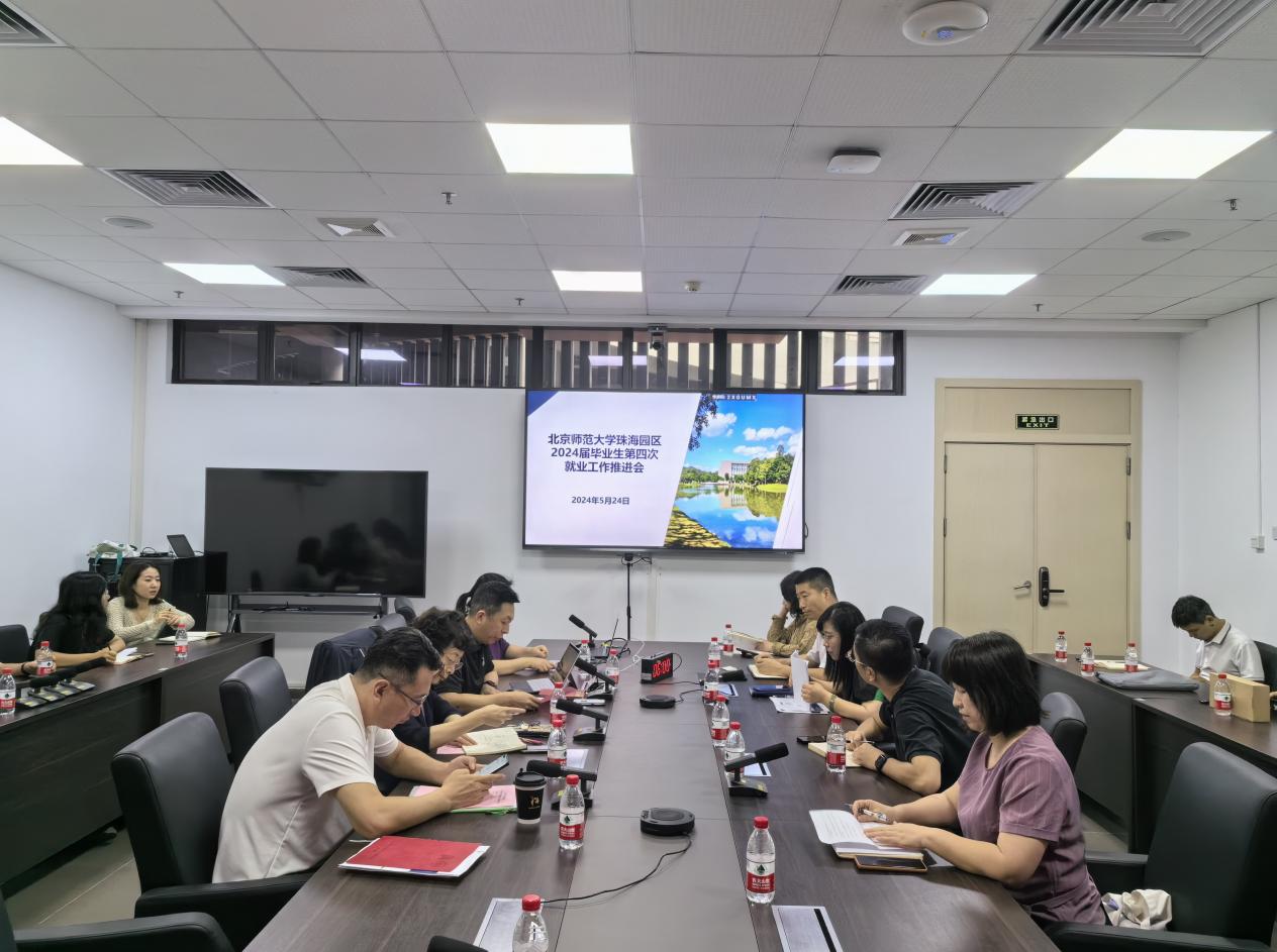 5月24日,北京师范大学珠海园区召开2024届毕业生第四次就业工作推进会,珠海校区管委会副主任、珠海分校副校长虞立红,珠海校区党委副书记、珠海分校党委副书记韩舰,各单位就业工作负责人和园区就业工作部门全体成员参加会议。