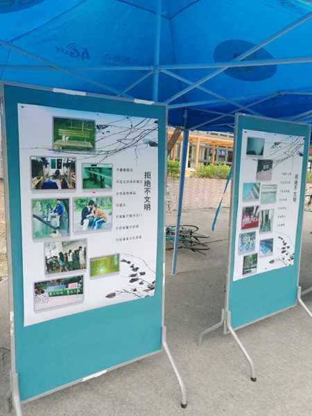 同学们设置了近30个展位和41个展板,展示校园文明风尚,倡导文明行为