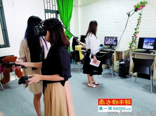 V R (虚拟现实)技术是一种可以创建和体验虚拟世界的计算机仿真系统,它利用计算机生成一种模拟环境,是一种多源信息融合的、交互式的三维动态视景和实体行为的系统仿真,使用户沉浸到该环境中。当下,虽然这一概念已经被大众所知,但真正体验过V R技术魅力的人却屈指可数。“主要是相关的设备国内并不齐全,而且设备价格高,并不亲民”,王浩的指导老师,北师大信息技术学院党总支书记、副院长黄静解释。正因为如此,黄静希望带领学生研究虚拟现实前沿技术,与企业共同研发应用性强的V R科研项目,学生也能投入到社会科技服务中,锻炼自己的能力。