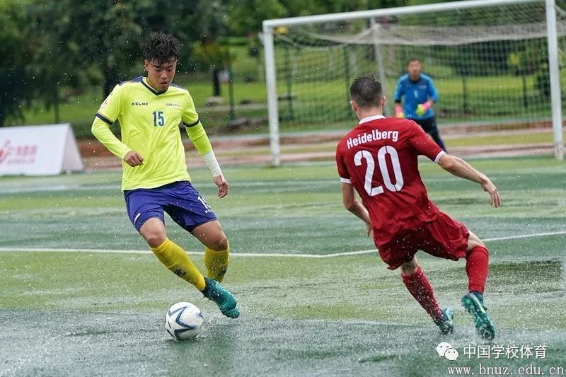 比赛上半场,两队势均力敌,以0:0暂时打平。下半场比赛一开始,天气骤变,大雨磅礴而至,使队员们在进行短传配合时遇到不少困难,对学生们的体能也提出了更高要求。在这种恶劣的天气下,海德堡大学的优势显现出来,下半场开局连进两球,最终以2:0取胜。
