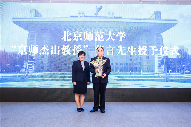 13日上午,北京师范大学“京师杰出教授”莫言先生授予仪式、余华教授聘任仪式在该校珠海分校举行。仪式上,北京师范大学副校长陈丽致辞,她特别提到莫言和余华两位先生与母校北师大30年的深厚情谊。1988年,两位作家曾就读于北师大与鲁迅文学院合办的作家研究生班。2013年,莫言先生重返母校,出任北京师范大学国际写作中心主任一职,为中心建设、北师大文科建设与发展作出卓越贡献。而余华自2014年成为驻校作家起,便为北师大的文学教育、国际交流做出了重要贡献。北京师范大学副校长王守军主持活动。