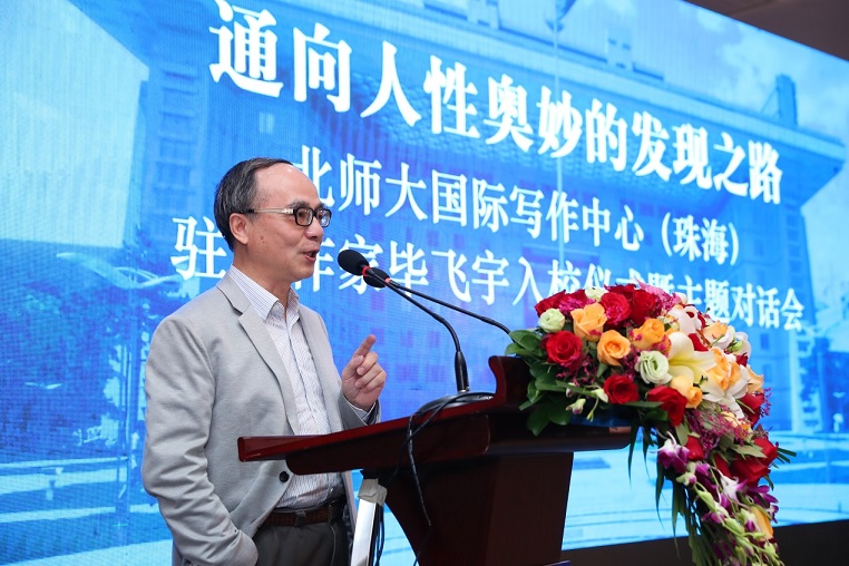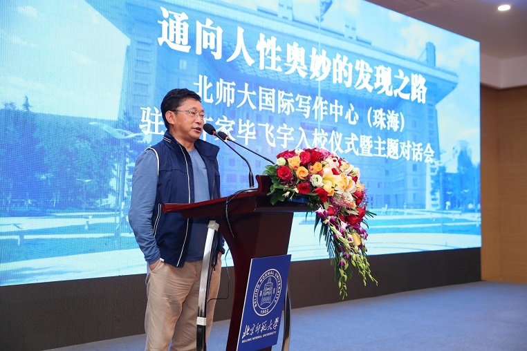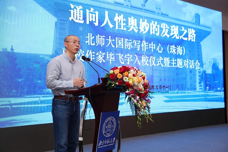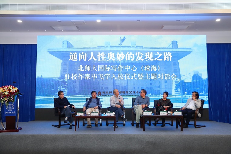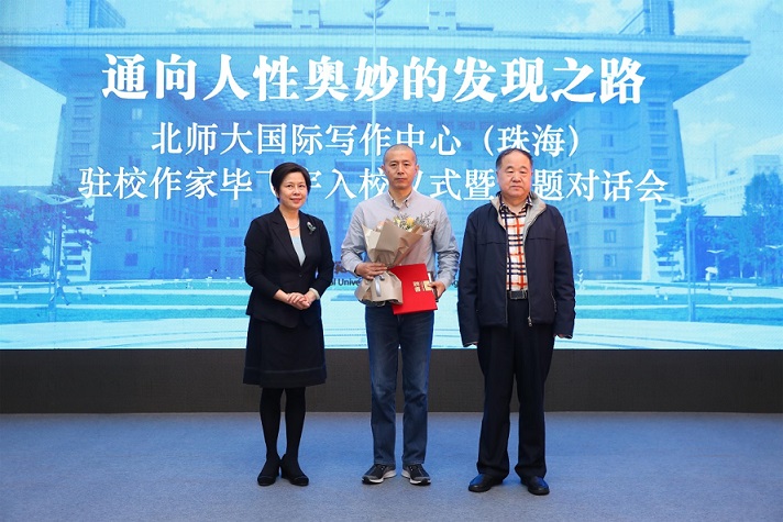 4月14日上午,“通向人性奥妙的发现之路:北师大国际写作中心(珠海)驻校作家毕飞宇入校仪式暨主题对话会”在北师大珠海校区举行。自2013年北师大写作中心引入驻校作家制度以来,先后邀请了贾平凹、余华、严歌苓、欧阳江河、苏童、西川、迟子建、翟永明、格非、韩少功等10位驻校作家,推动了文学教育事业的蓬勃开展。今年,知名作家毕飞宇也加入到驻校作家的行列,在入校仪式上,北师大国际写作中心主任莫言、珠海分校副校长傅爱兰为毕飞宇颁发聘书,仪式由北京师范大学国际写作中心执行主任张清华主持。