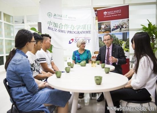 涂校长非常自豪地说,随着国际化教育的深入,学校外籍教师及拥有境外学习或工作经历的教师比例达40%,极大开阔了学生的国际视野,提高了学生参与国际竞争的能力和意识。开放的培养模式,让具有国际发展目标的学生在打下坚实的专业根基后,走出国门,进入世界名校,拥有更加广阔的平台。出国深造学生大部分被世界知名大学如英国剑桥大学、卡斯商学院、帝国理工大学、美国华盛顿大学、澳洲国立大学、墨尔本大学等录取。据统计,北师大珠海分校2015届仅出境深造的学生占比就达10%以上。