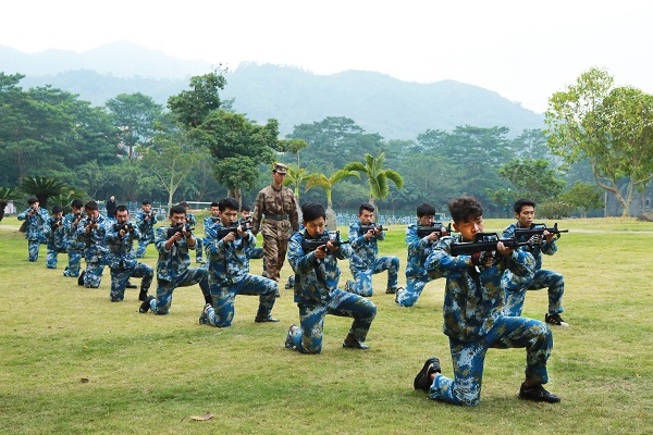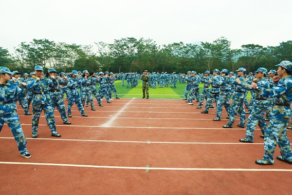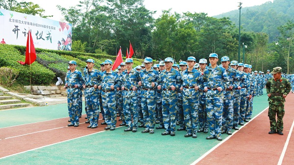 本网讯(记者 蔡旻俊 林崇昕 谢穗敏)“硬骨傲苍穹,笑傲迎风雨”,木铎军号已在北师珠吹响,蓝色迷彩是冬季校园里最靓丽的一道风景!为了让全体学生认真学习人民军队、革命军人的好思想、好传统、好作风,磨练意志,强健体魄,不断提高自身的思想水平、政治觉悟、道德品质、身体素质,2016级军训于1月9日正式拉开帷幕。5500名受训学生被分为34个连队参与训练,完成基本队列训练、单个军人队列、匕首操、刺杀操、特种战术及应急演练等内容。