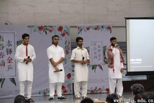 参加朗读活动的有学校各学院选送的16支代表队伍,队伍中也不乏师生共同参与的。活动中,诵诗歌、读散文、讲故事,展示原创作品,品味经典名篇,文学的语言,诗意的情感,或慷慨激昂,或低回婉转,或含蓄隽永,或情深意长,朗读的魅力感染着现场每一个人,人文的气息浸润着现场每一个人。朗读活动由国学社、悦读社的同学以儒家经典《大学》的朗诵拉开序幕,同时还邀请了留学生代表,来自香港的巴基斯坦裔的四位大一留学生朗诵了《游子吟》和《水调歌头》。