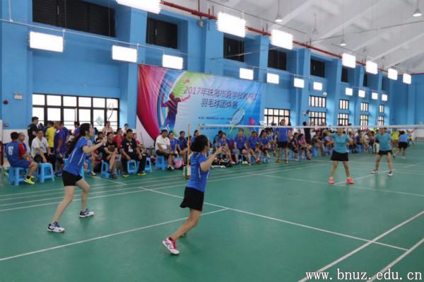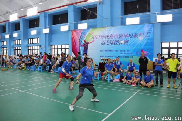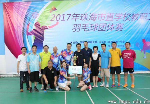 本网讯(通讯员 李瑞)5月20-21日,2017年珠海市学校教职工羽毛球团体赛在珠海市第一中学体育馆举行。我校派出以戴伟副校长为领队的16人队伍参加了高校组的比赛,取得历史最好成绩——高校组季军。