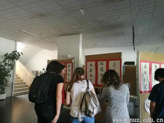 此次展览共展出学生作品40幅,包括软笔书法、硬笔书法和中国画。其中,以软笔书法作品为主,兼容小篆、行书、楷书三种书体。此次展品均为爱好中国文化的学生自今年2月份以来在课后参加“汉语角”时所习作品,创作主体为葡萄牙学生,也有佛得角、巴西等其他国家的学生参与。书画艺术是中国文化的重要组成部分,中国文化中心希望通过此次活动让更多的师生了解、热爱中国的文化。
