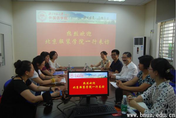 本网讯(通讯员 孙冬雪)6月30日下午,北京服装学院大学外语部代表团一行三人在于莉教授的带领下,对外国语学院进行了访问。外国语学院院长、党总支书记陶文好教授、副院长谢庆立副教授、副院长谢文婷副教授、党总支副书记王燕老师、大学外语部主任李蕾老师等,在乐育楼B107热情接待了各位来宾。双方就大学英语改革和英语专业改革等方面进行了深入的交流。