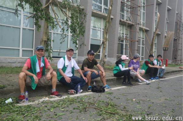 席老师谈到,台风来时,他正好在学校。亲眼目睹台风在校内肆掠的情景,他感到无比心痛。在建校初期,席老师就已经来到了北师珠。可以说,他是看着这里的一草一木慢慢成长,看着校园一点点变得水草丰美、树木参天。席老师说:“我看见一棵棵大树被风刮断,被连根拔起,道路被堵塞,运动场馆也破损了。十几年的建设成果部分毁于一旦,到处一片狼藉,真是让人欲哭无泪。”