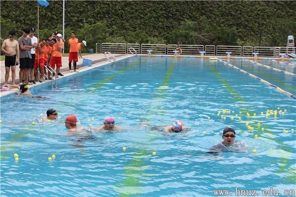 本网讯(通讯员 李瑞 高远)10月14日上午,第十届教职工游泳比赛在我校游泳馆顺利举办。本次比赛在以往自由泳、蛙泳、仰泳、单人划泳圈和快乐之家项目以外,增设了趣味项目聚龙珠,吸引了近百名教职工前来参赛。