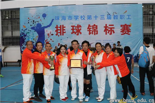 本网讯(通讯员 冼乐人)2017年11月26日,由珠海市教育工会举办的珠海市第十三届学校教职工排球比赛在珠海市第二中学排球馆落下帷幕。我校工会组织了教职工男女排球队参加了大学组和女子组的比赛。经过艰苦的激烈对战,我校教职工男排在击败城职院队后,在决赛中以1:2的比分不敌北理工队,蝉联冠军失利,获得大学组亚军。我校女排是唯一的一支珠海市本科高校参赛队,被分在开展排球运动多年的中学组参加比赛,最终以六战三胜三负成绩排名第六名。本届比赛分校男女排球队获得的名次虽然比不及上届,但是队员的发挥和技术水平有所提高,顽强拼搏的精神更胜从前。