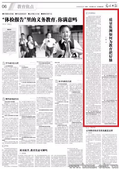 8月18日,《光明日报》06版“教育焦点”整版聚焦《中国义务教育质量监测报告》,刊发北京师范大学校长、教育部基础教育质量监测中心主任董奇教授文章《质量监测如何为教育把好脉》。
