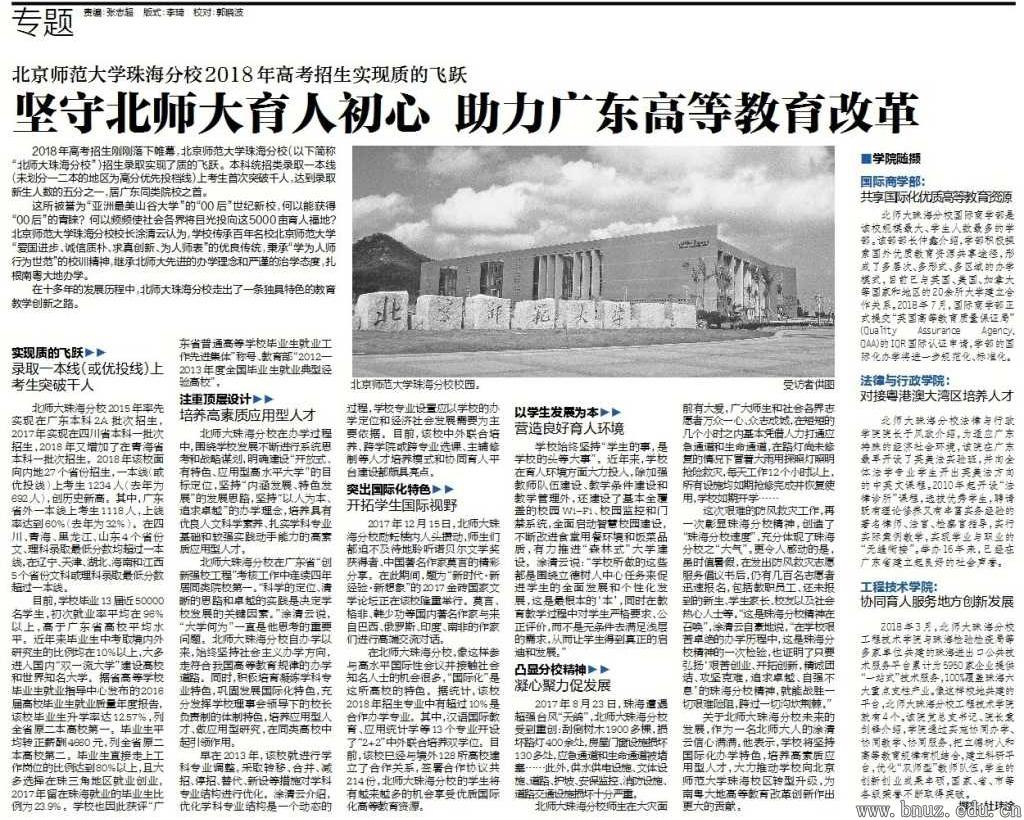 8月28日,《南方日报》A04要闻版推出《坚守北师大育人初心 助力广东高等教育改革》专题报道。全文转载如下: