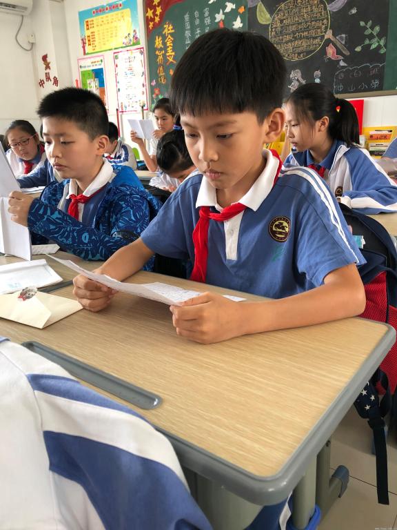彭波娜毕业于北师大珠海分校文学院2013级汉语言文学专业,现在是深圳市坪山区中山小学的一名语文老师。在教授课文《尺有所短 寸有所长》这篇书信文时,为了让学生掌握基本的书信格式,激发学生的学习兴趣,她萌生了一个想法,鼓励小学生给远方的大学生哥哥姐姐们写信。在信中,小学生们可以畅所欲言,询问关于大学生活的一切问题。