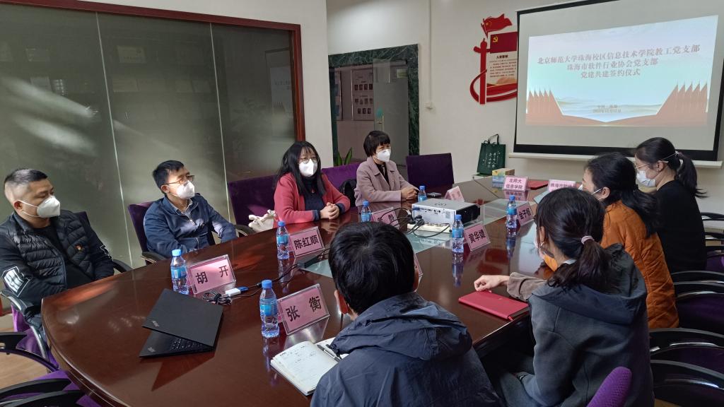 为深入学习贯彻党的二十大精神,坚持以习近平新时代中国特色社会主义思想为指导,把学习贯彻党的二十大精神与习近平总书记对广东系列重要讲话和重要指示精神结合起来,紧紧围绕广东省第十三次党代会、珠海市第九次党代会的工作部署,坚持“产业第一、交通提升、城市跨越、民生为要”工作总抓手,进一步加强校地党建结对共建、工作互助、问题共解的新路径和新方法,12月22日下午,信息技术学院教工党支部与珠海市软件行业协会党支部开展“党建共建促发展,汇智聚力助创新”活动。信息技术学院党总支书记兼教工党支部书记黄静、支部纪检委员贺辉、组织委员陈红顺以及学院就业指导老师胡开前往珠海市软件行业协会调研,协会支部书记、秘书长黄华婕,组织委员、会员服务部部长金子杨,财务总监宋秋苑,协会产业研究部部长张衡等热情接待,双方在协会会议室组织召开党建经验分享座谈会。