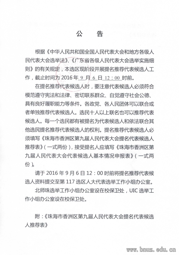 附件1:珠海市香洲区第九届人民代表大会提名代表候选人推荐表