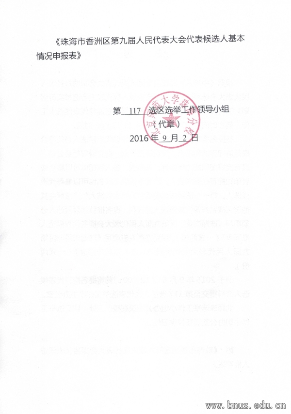 附件2:珠海市香洲区第九届人民代表大会代表候选人基本情况申报表