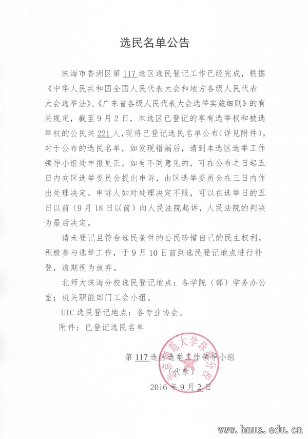 【公告通知】第117选区开展提名推荐代表候选人工作的公告