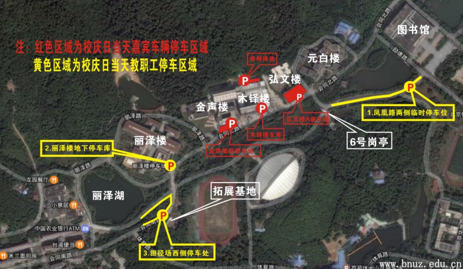 根据学校办公室《关于组织师生参加建校15周年纪念日活动的通知》,12月16日校庆日当天金声楼、木铎楼、弘文楼A座车库及楼下周边区将临时作为嘉宾车辆和校庆专用车辆停放区。