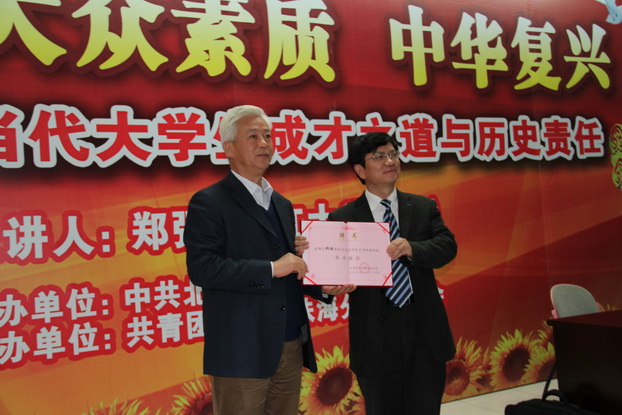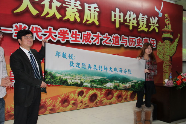 “好的教育让人走向善良;反之使人愚昧,而且愚昧得不可理喻。”郑强教授认为教育是把双刃剑。绘画、音乐、下棋都不是素质教育,只有“诚实做人”、“不怕艰苦”才是顶天立地的精神财富。“也许没能考入名校,可又如何,你只是在为未来预留发展的空间,”郑教授激动的说道,“那么,在北师大珠海分校读书是你人生之幸。”