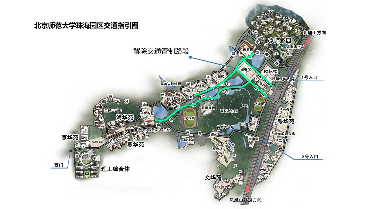 为便于期末、暑假期间教师、施工等车辆通行,兹定于2024年6月21日23时至8月25日24时,解除校园会同北路(乐育楼前至金声楼前路段)、励耘路、励德路、凤凰路及海华苑的交通管制。2024年8月26日零时起恢复交通管制。